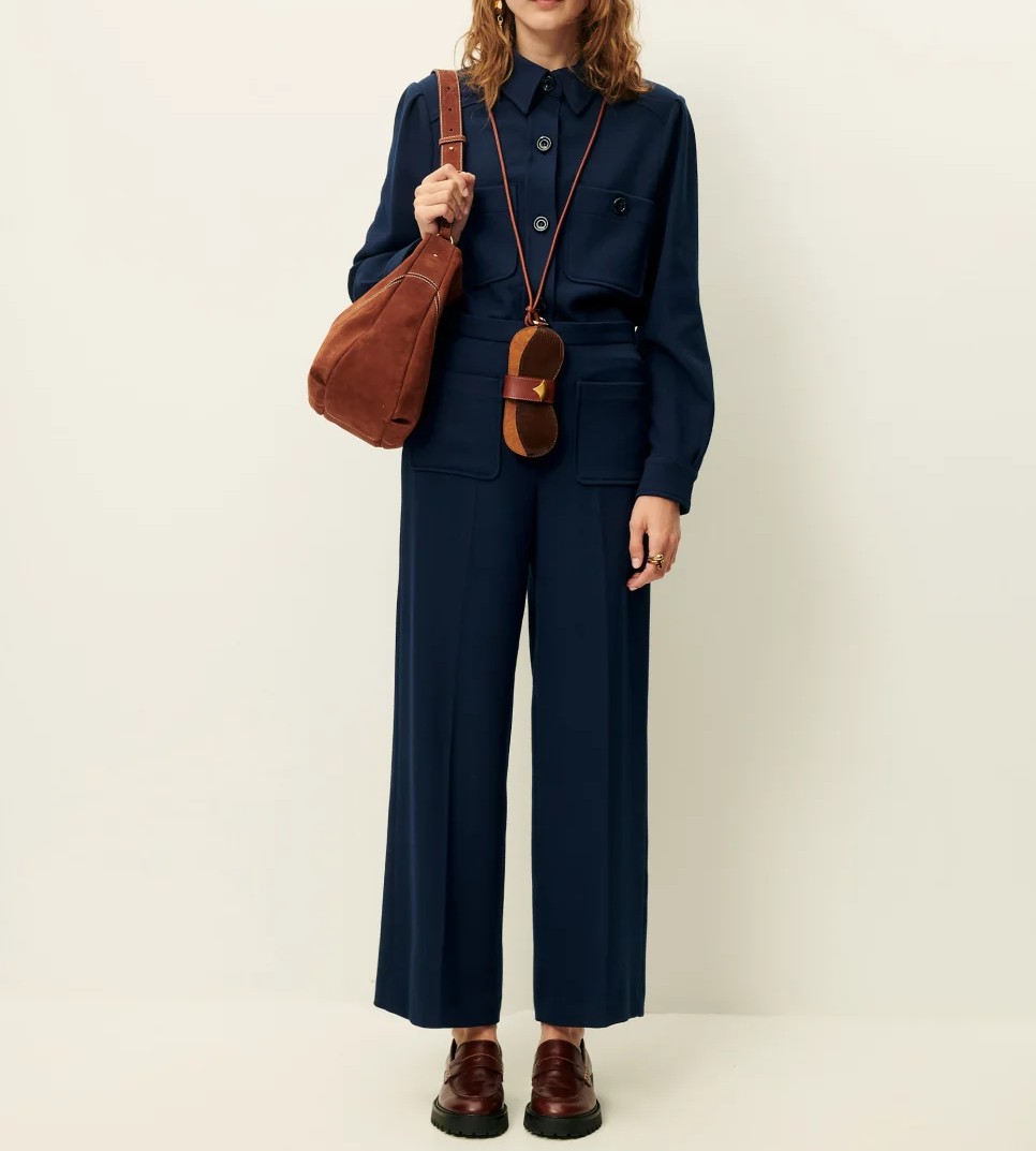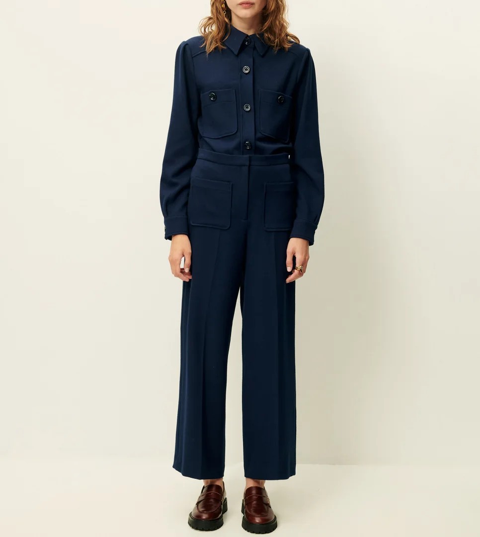 Talle alto con cierre de grapa en la cintura, cremallera oculta y bolsillo de parches