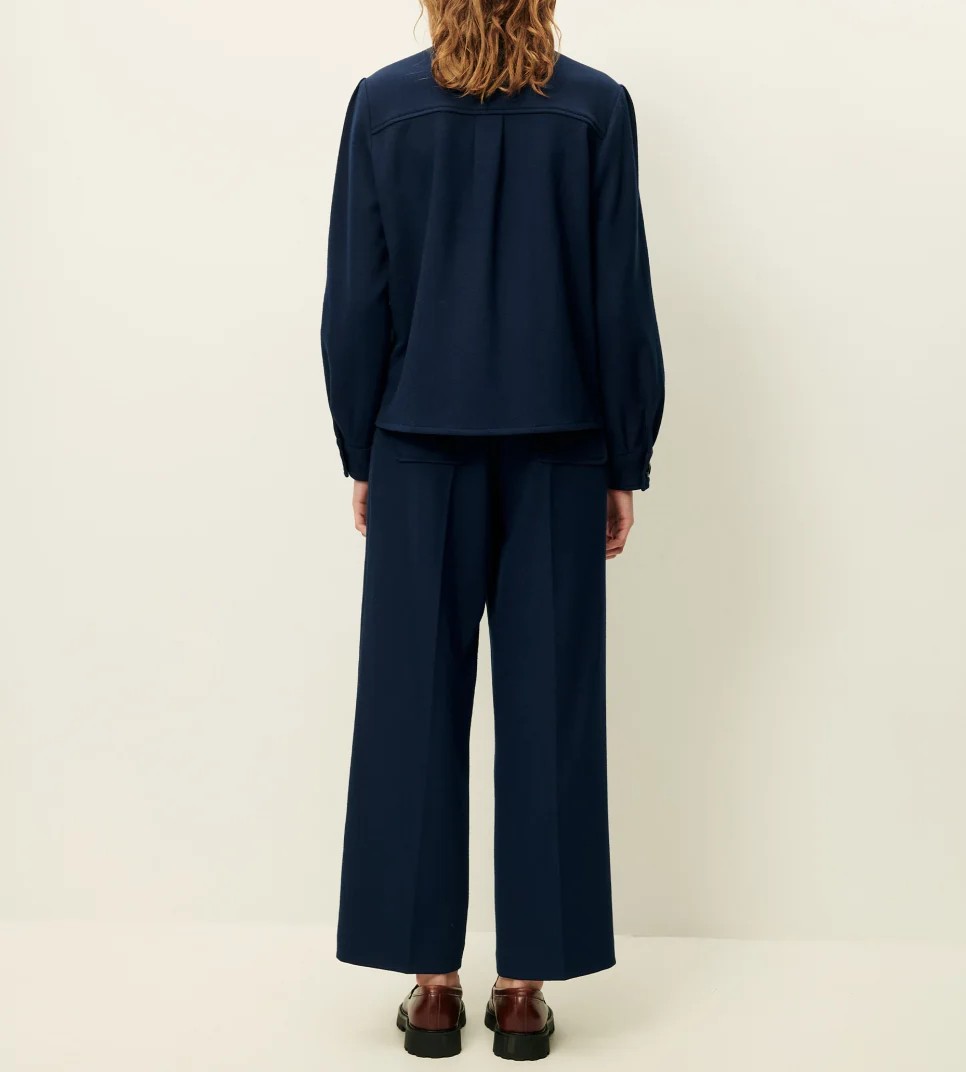 Pantalon de corte recto en tricotina fluida , tejido en Portugal.