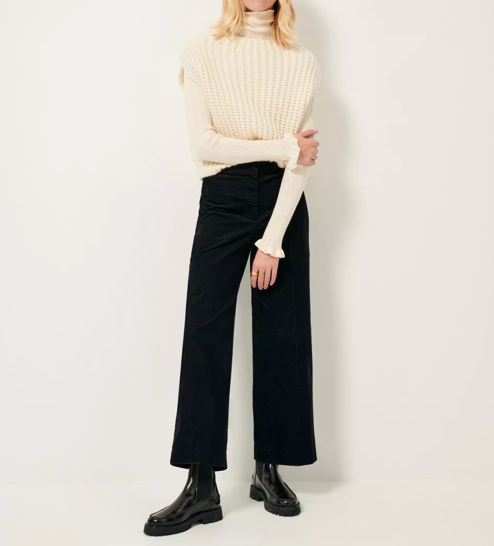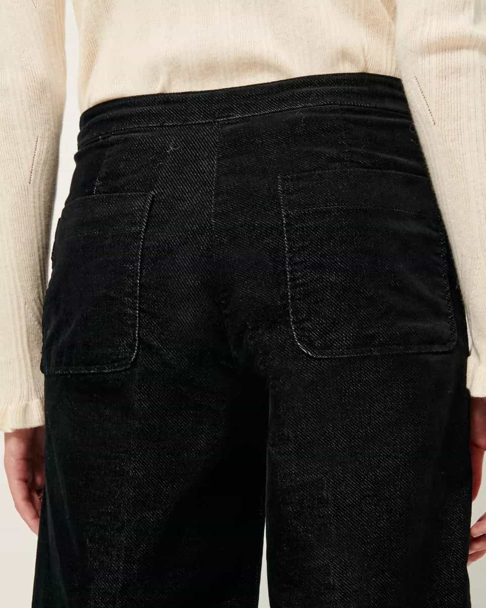 Talle alto, cierre de grapa en la cintura, cemallera oculta, bolsillos invisibles en la costura .