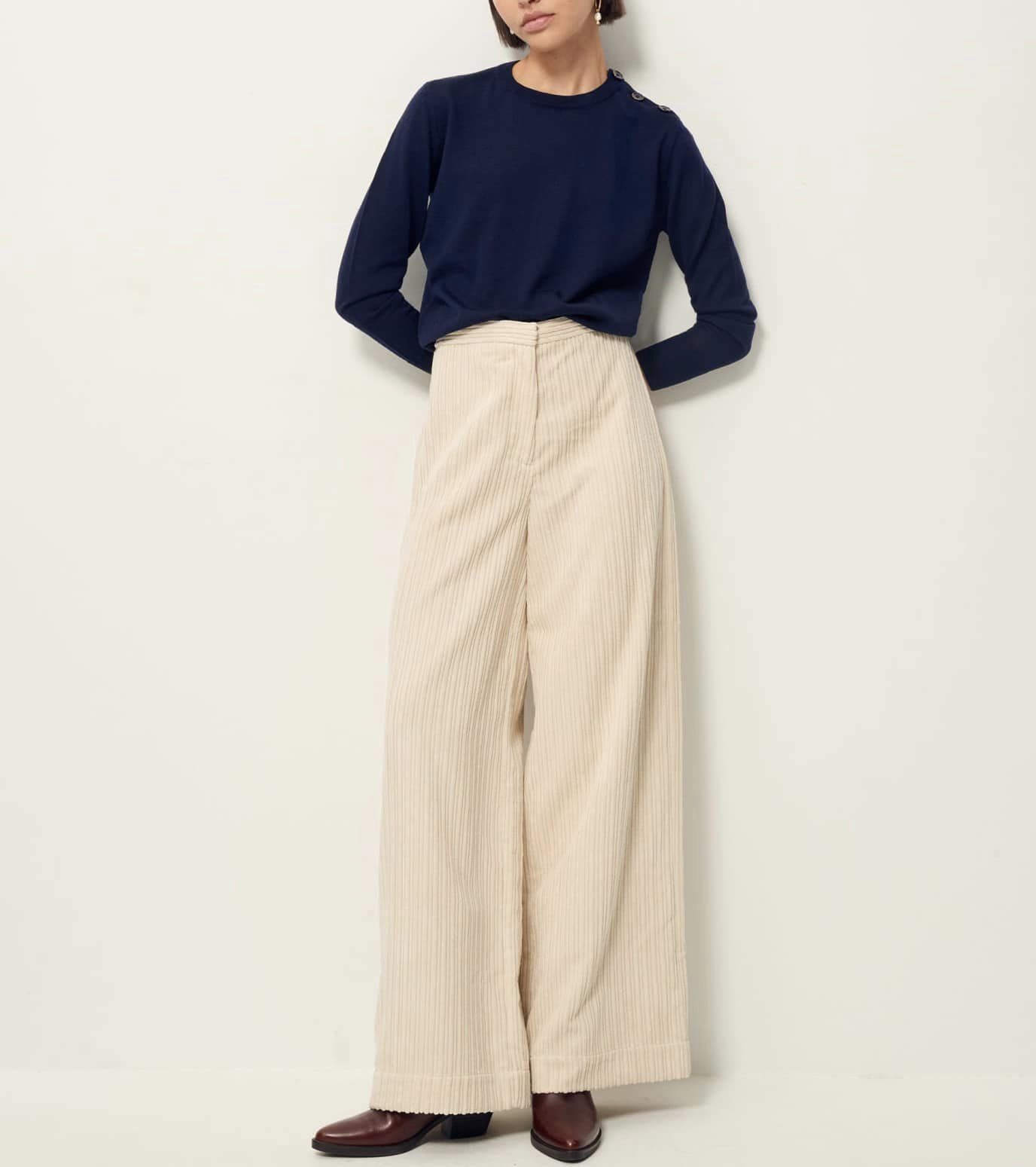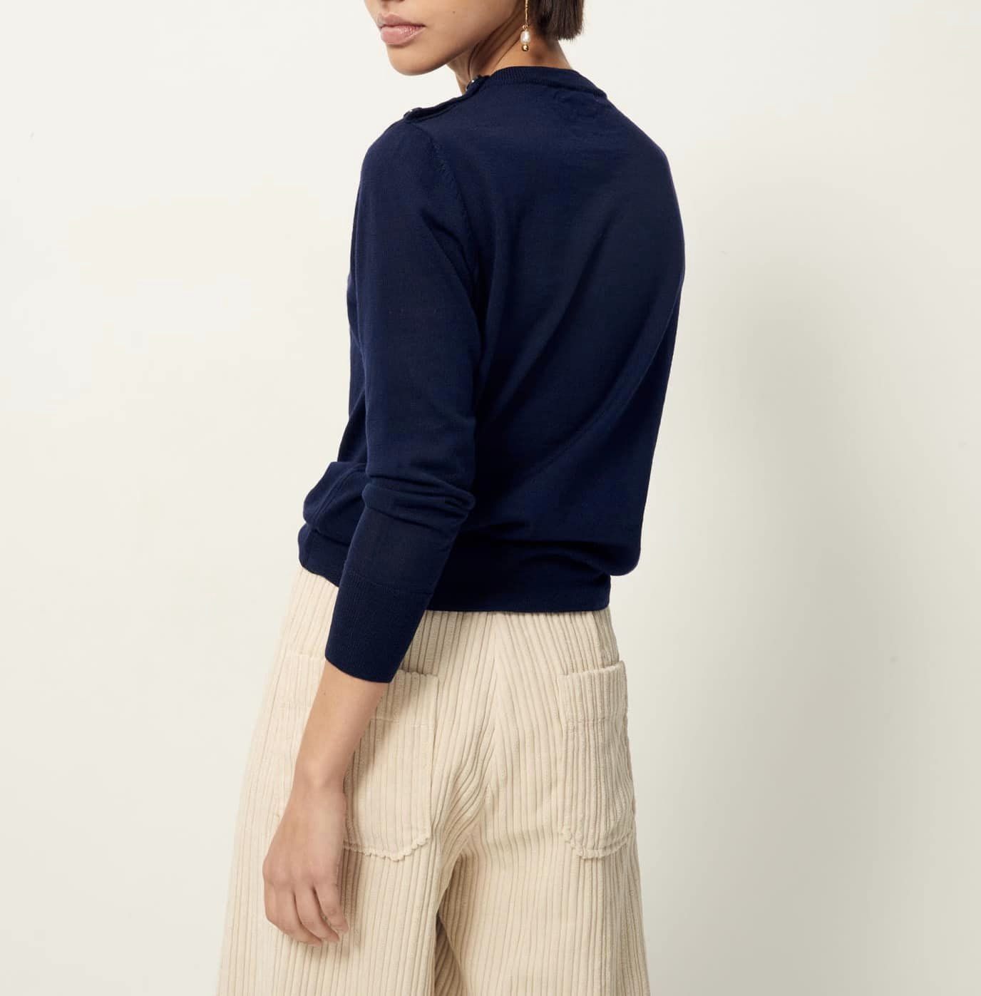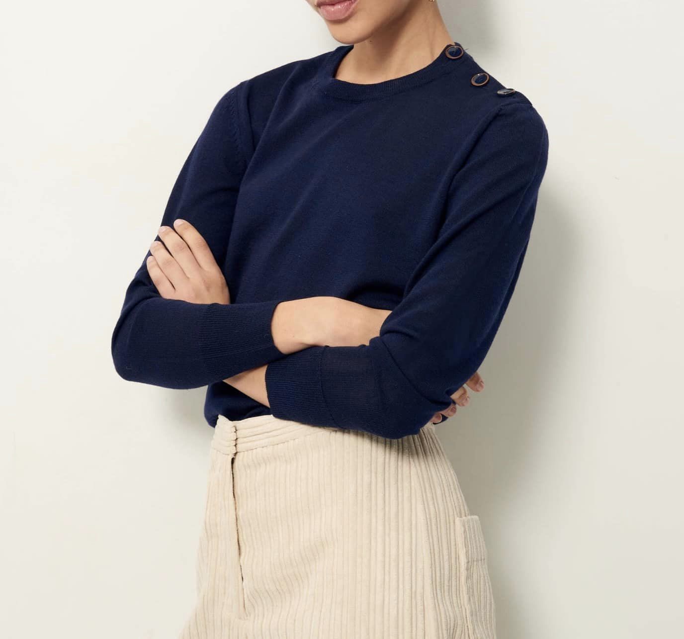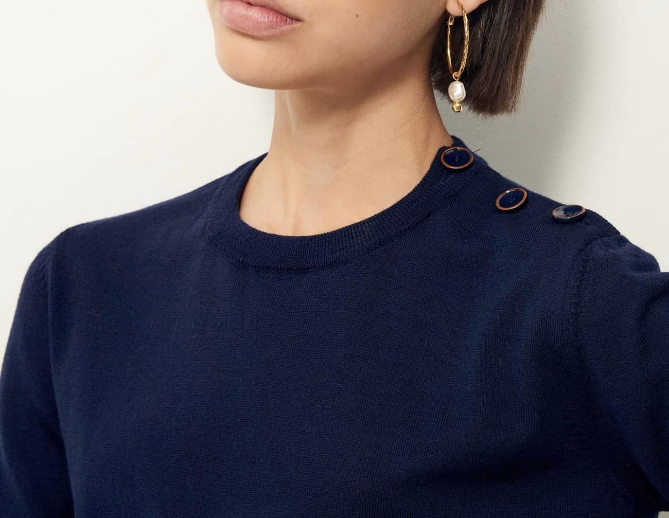 Jersey ajustado en punto fino de lana merino ( esta lana es suave y presenta una propiedades termorreguladora)