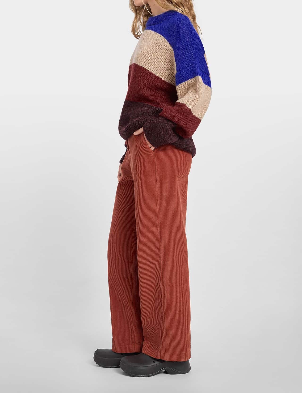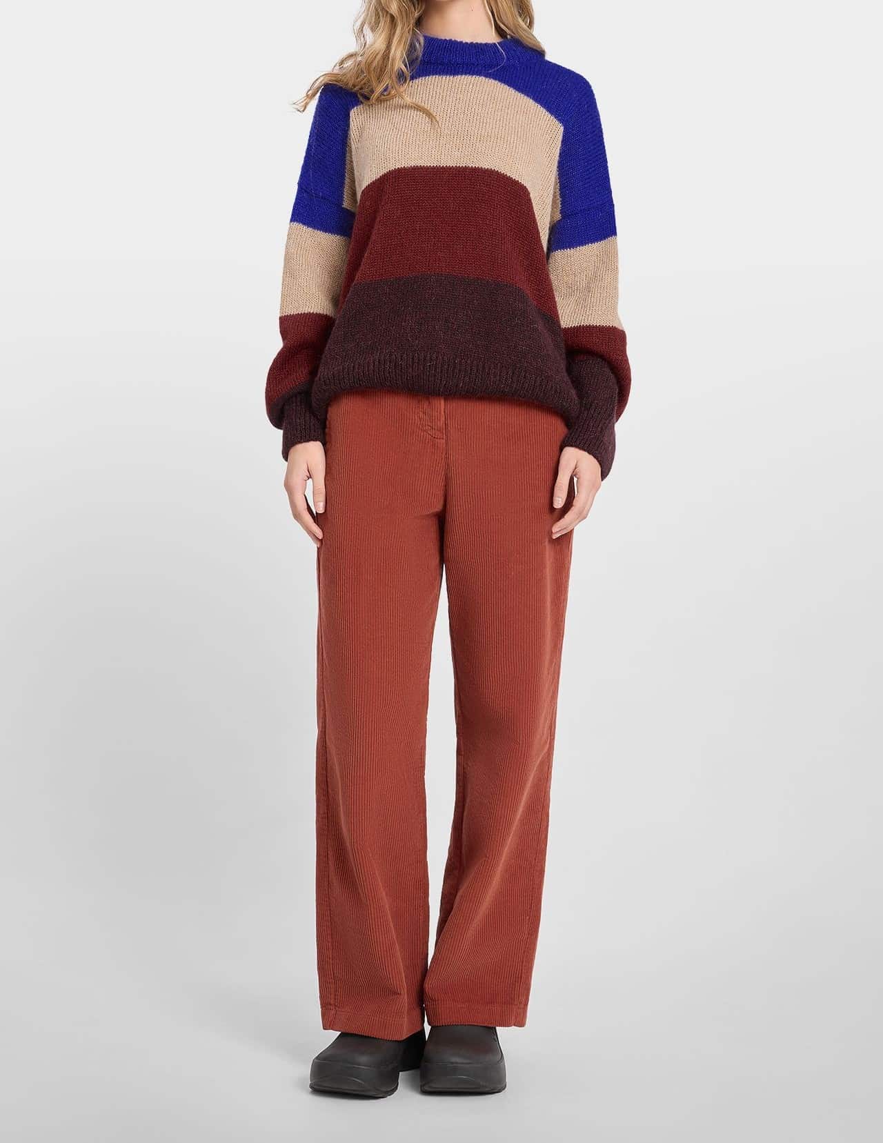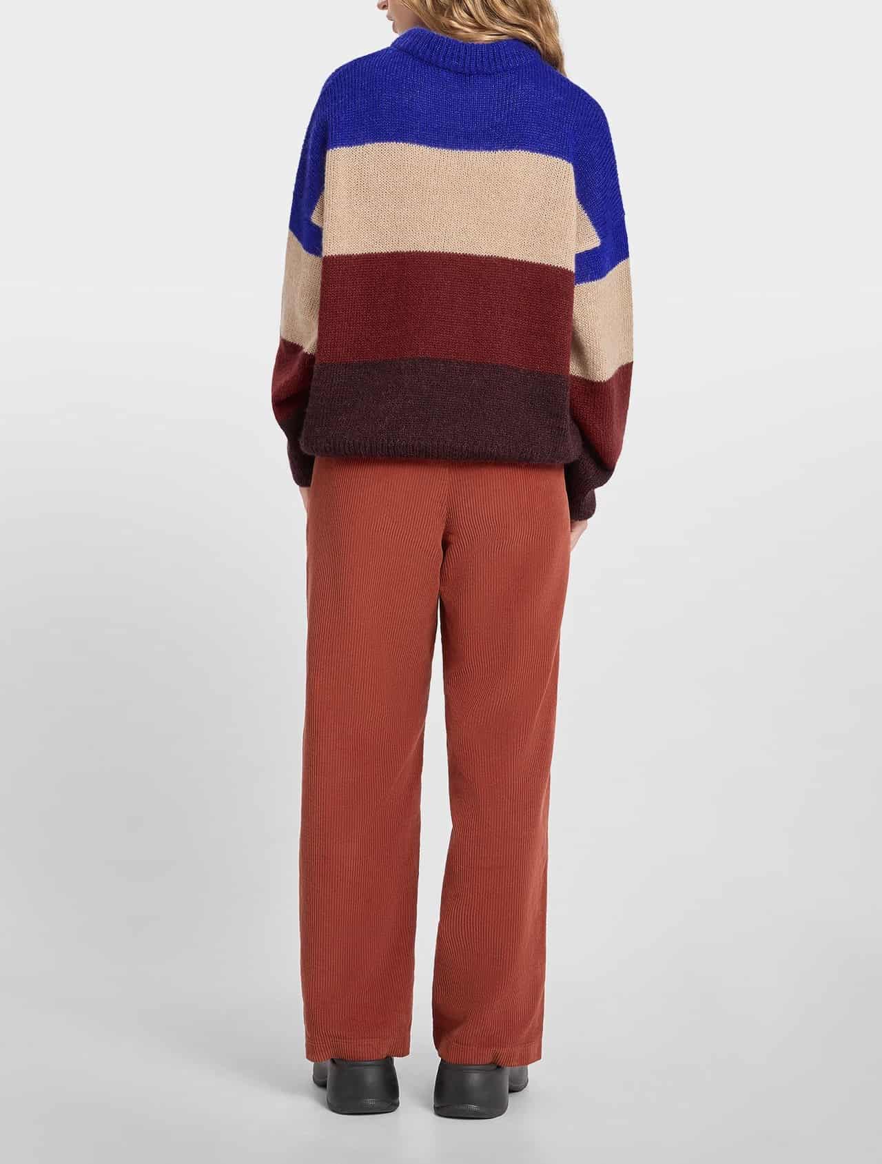 Jersey amplio de rayas anchas, cuello redondo y mangas largas