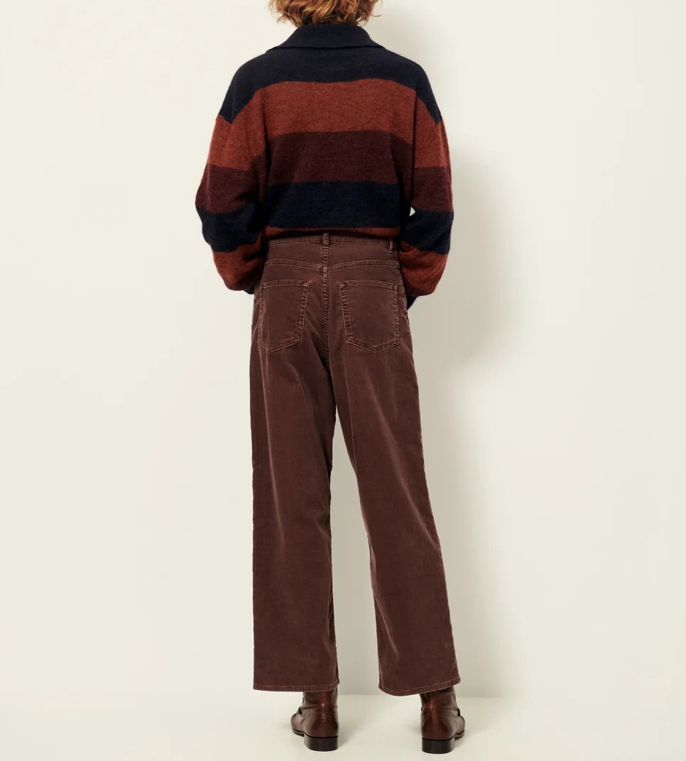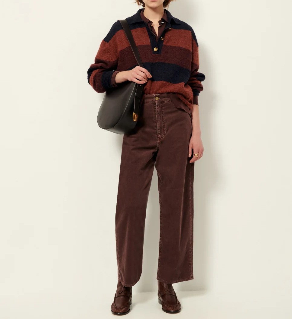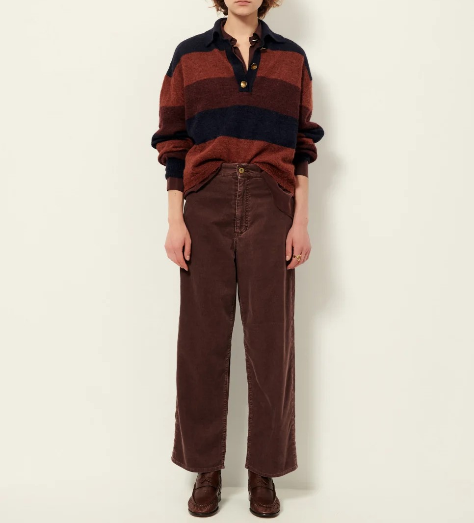 Polo de manga larga en punto aterciopelado con motivo de rayas , tejido en Italia.