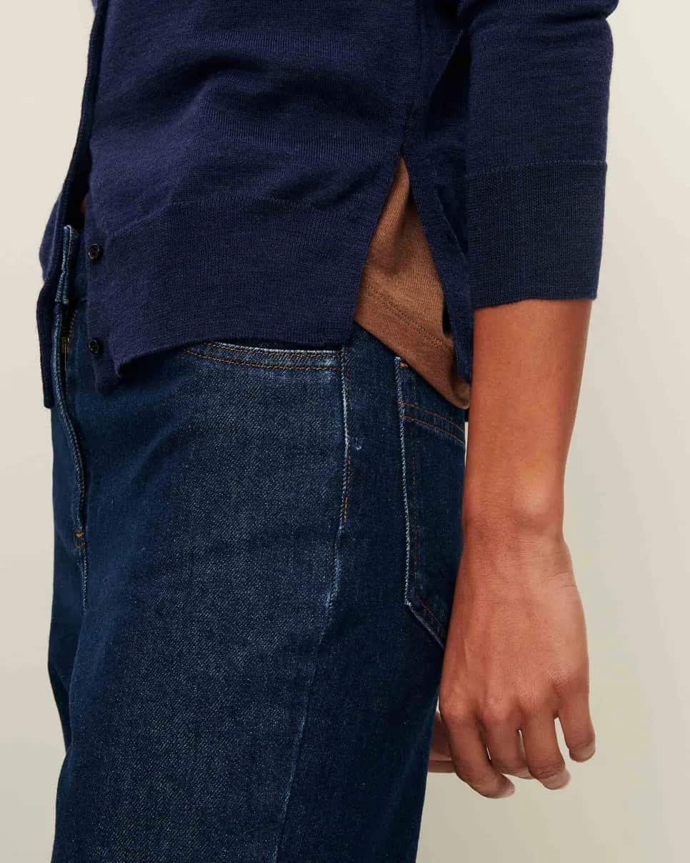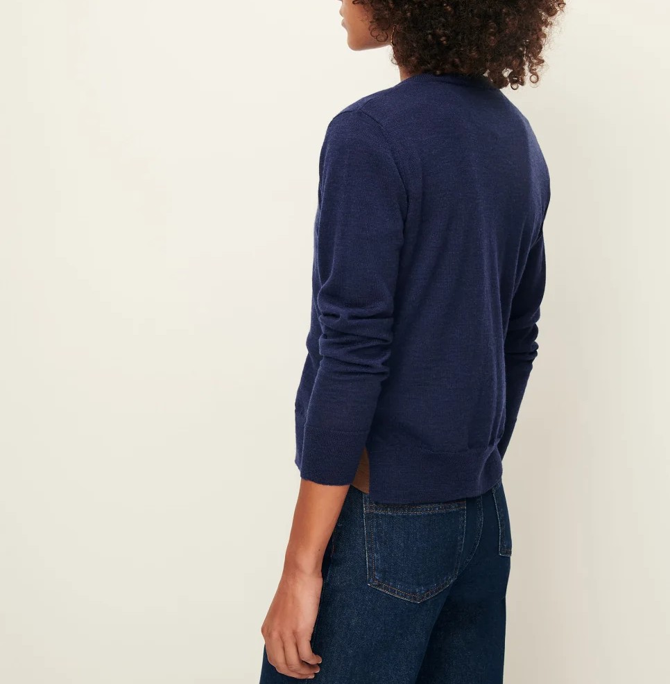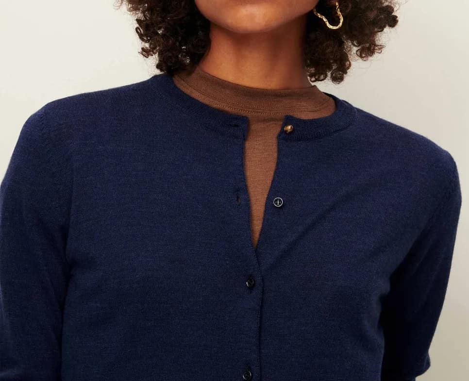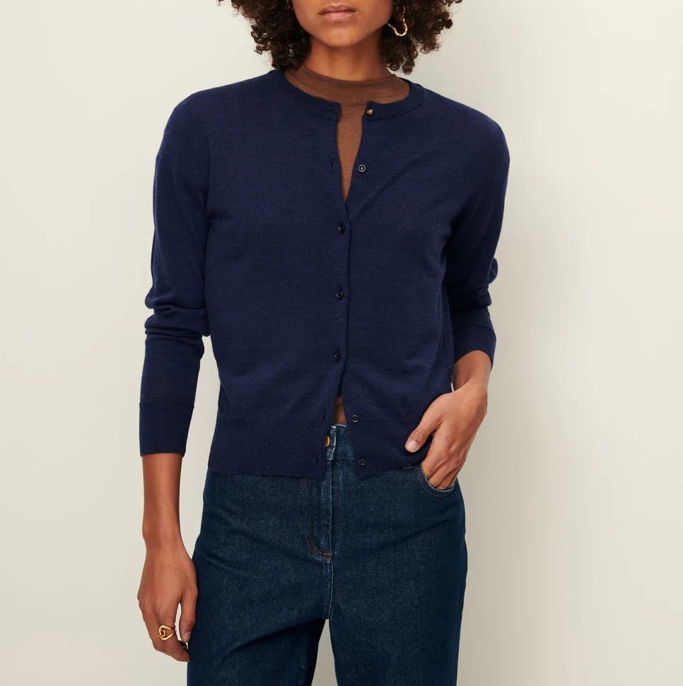 Rebeca ajustada en punto fino de lana de merino.