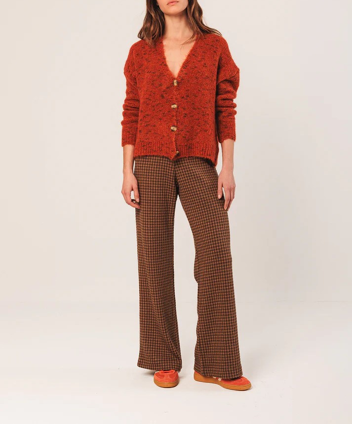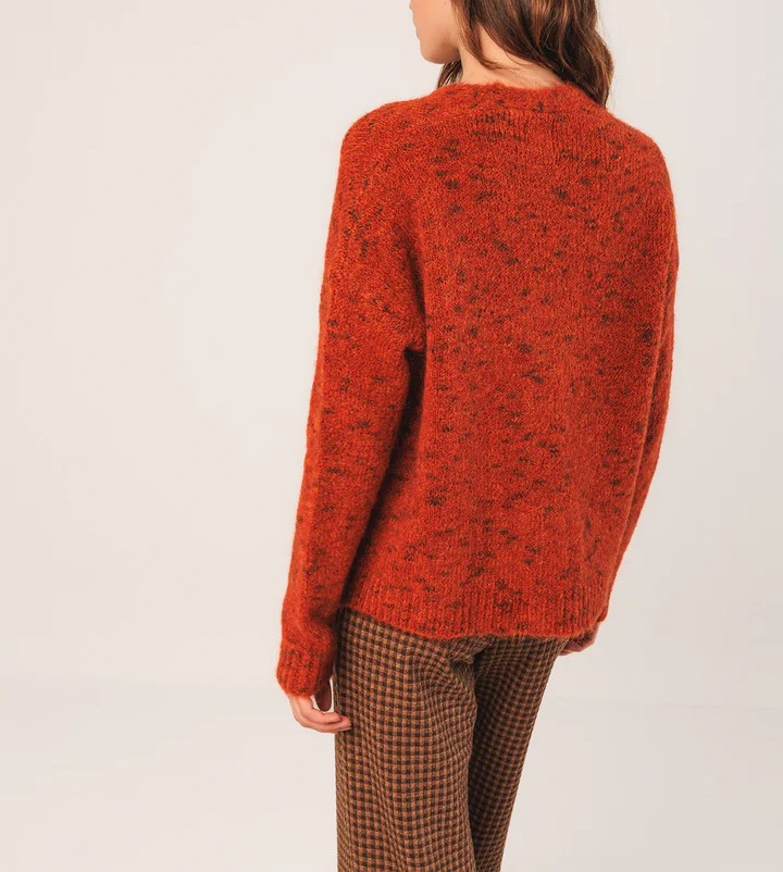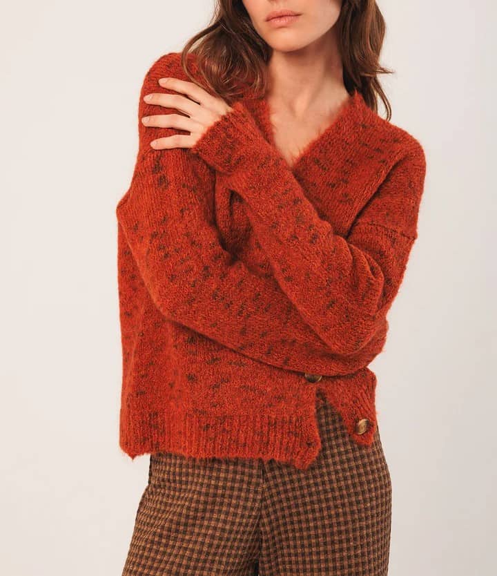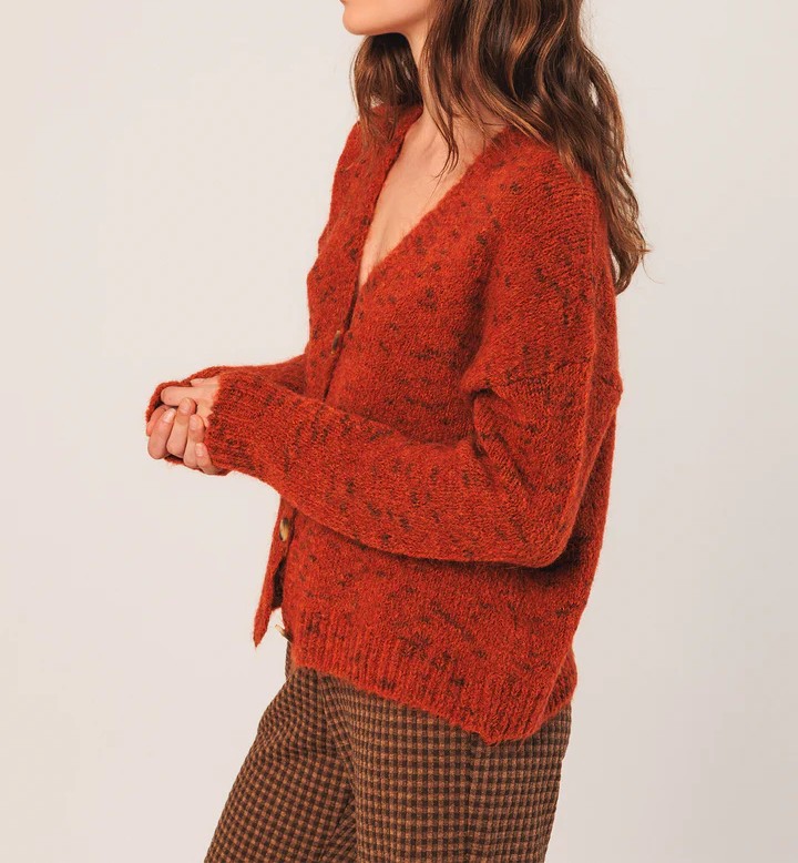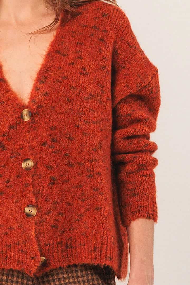 Cardigan relajado con hombro caido, manga larga y puño acanalado. Cierre de botones y un poco oversize.