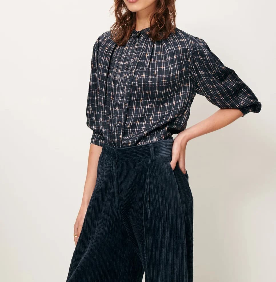 Blusa en tela satinada y ligera , motivo exclusivo de Sessun