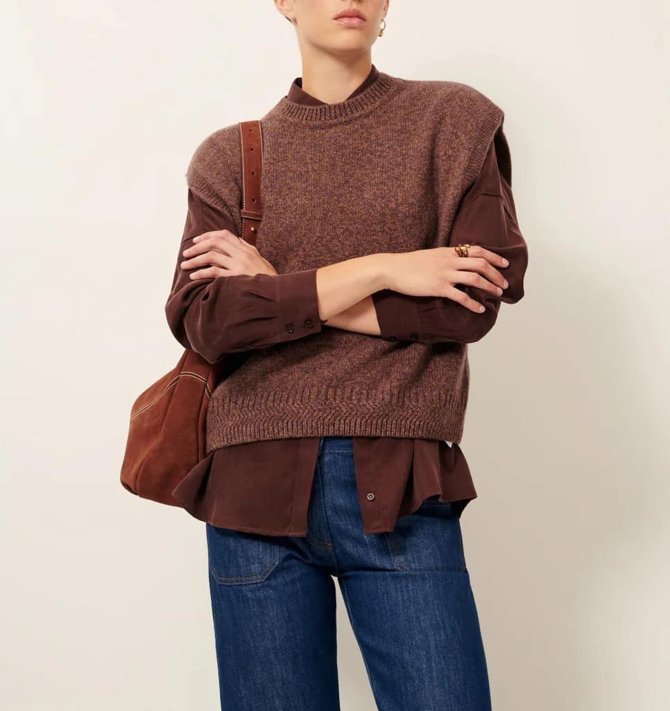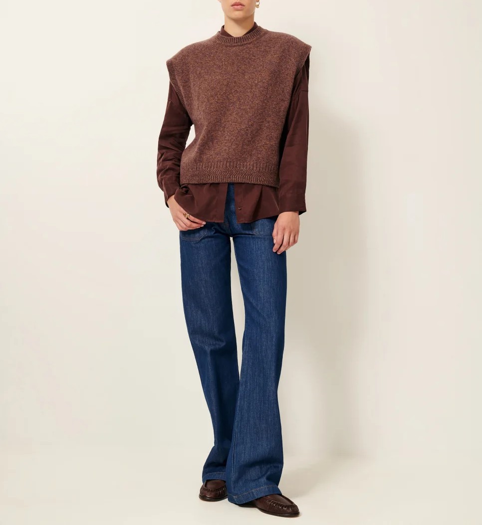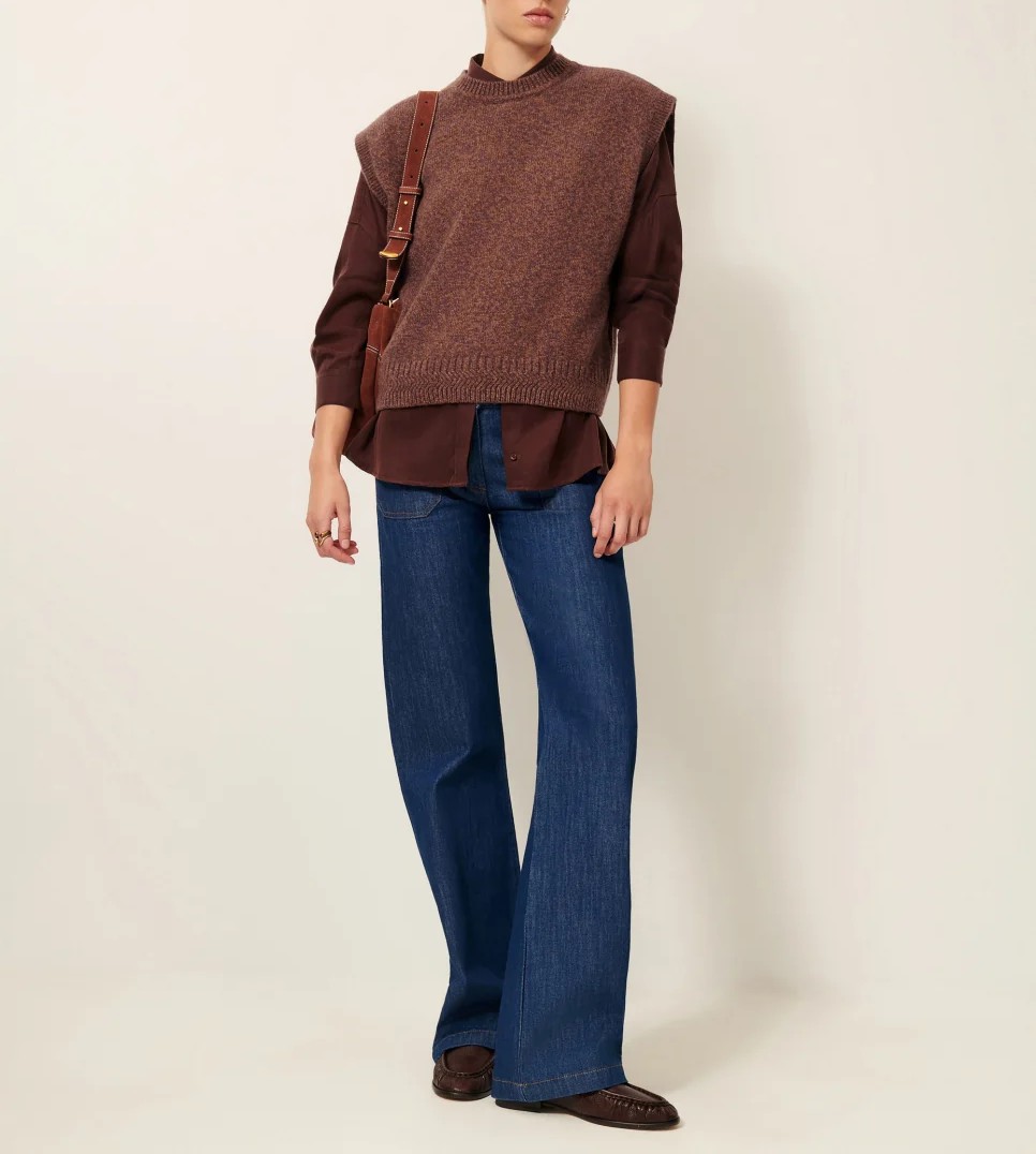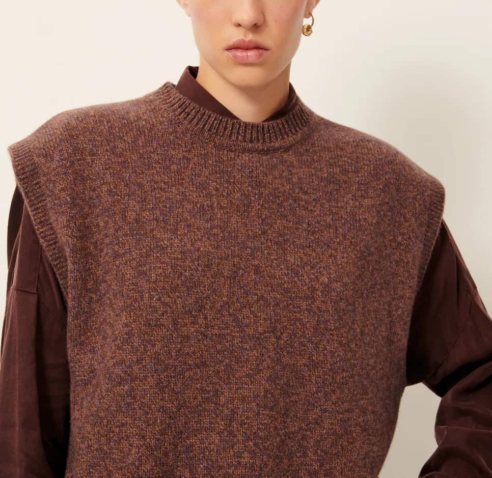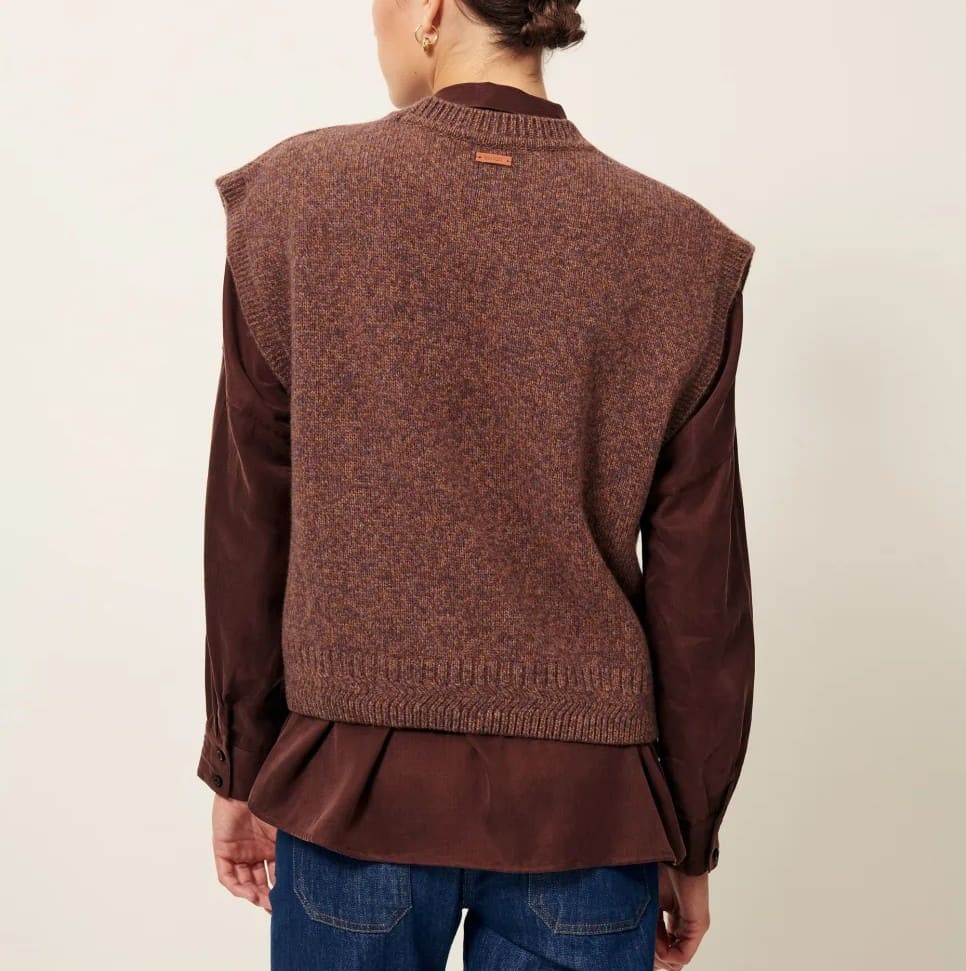 Jersey sin manga en lana merina moteada con cuello a la caja.