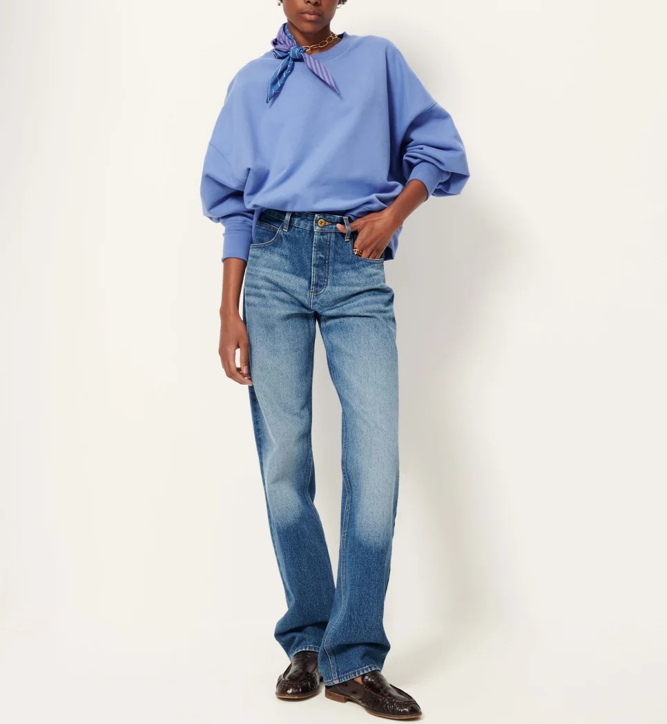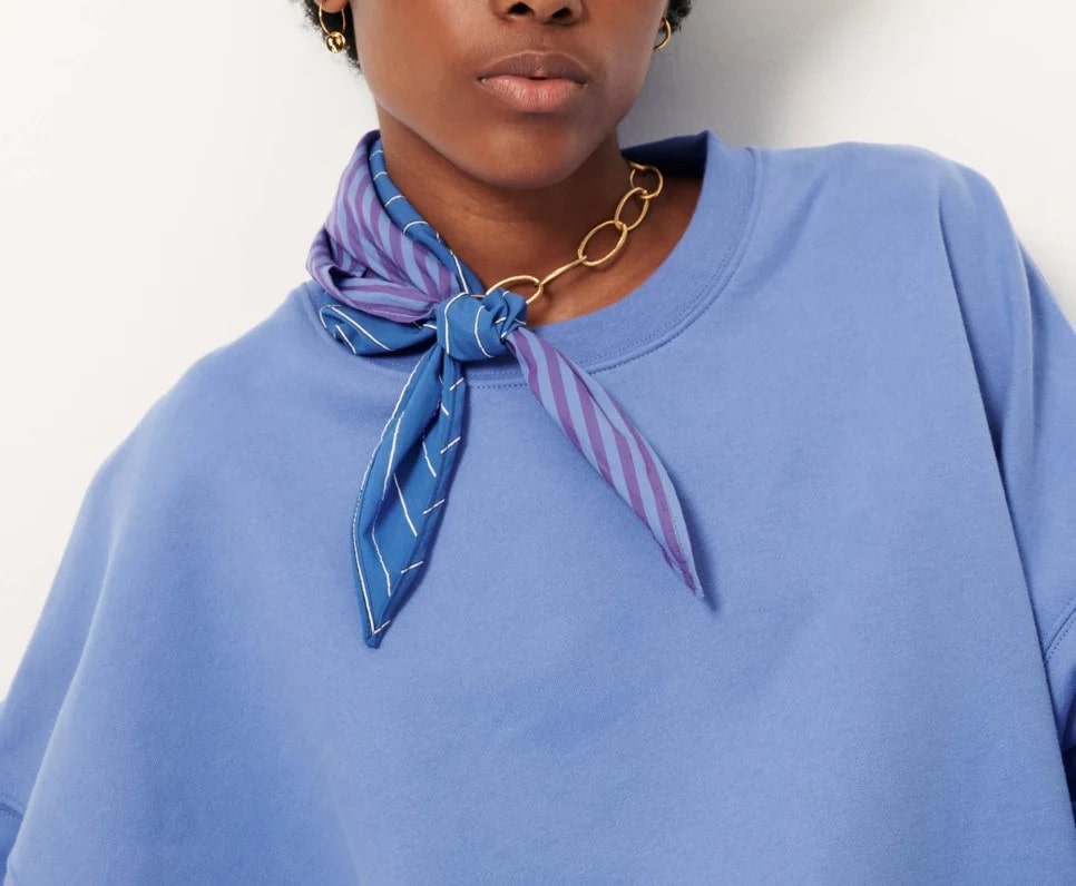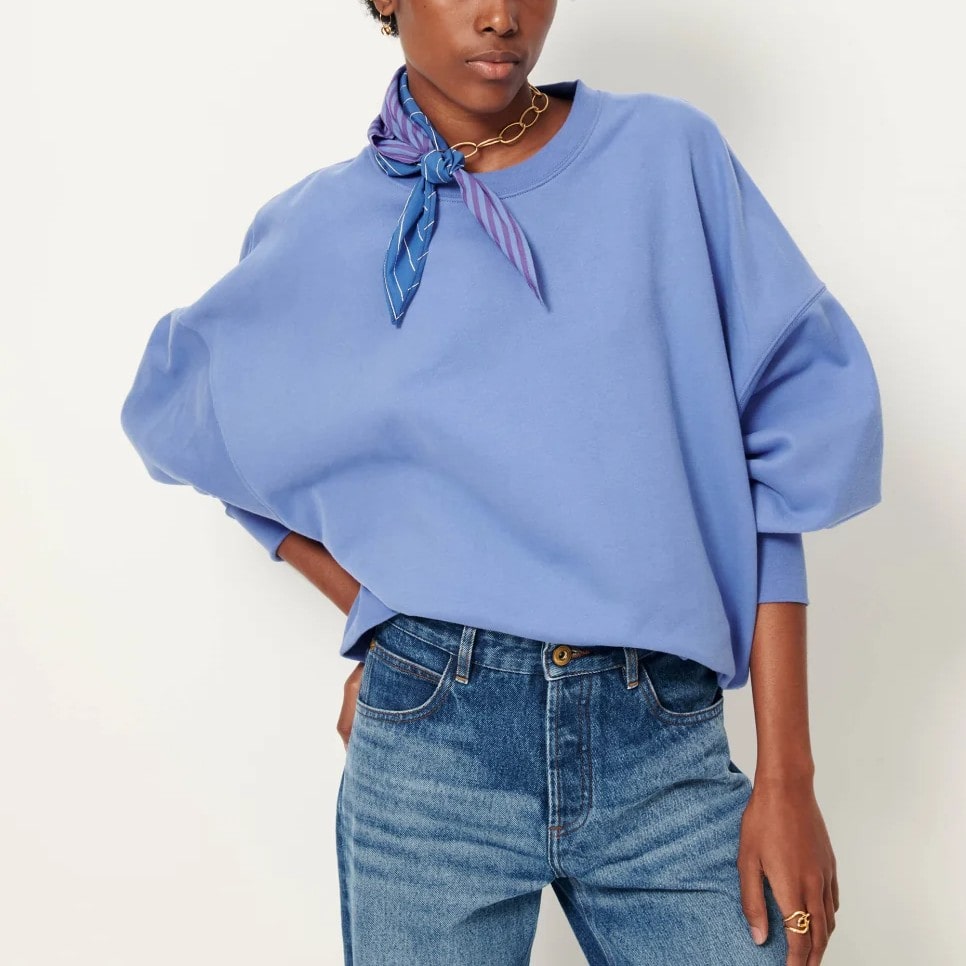 Sudadera corta oversize en muletón capillado, tejida en Portugal.Cuello redondo, sisa baja y manga larga ajustada a la altura de los puños.