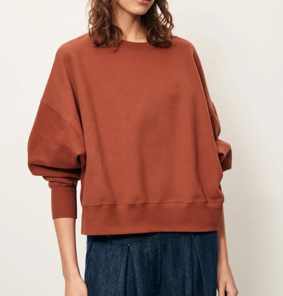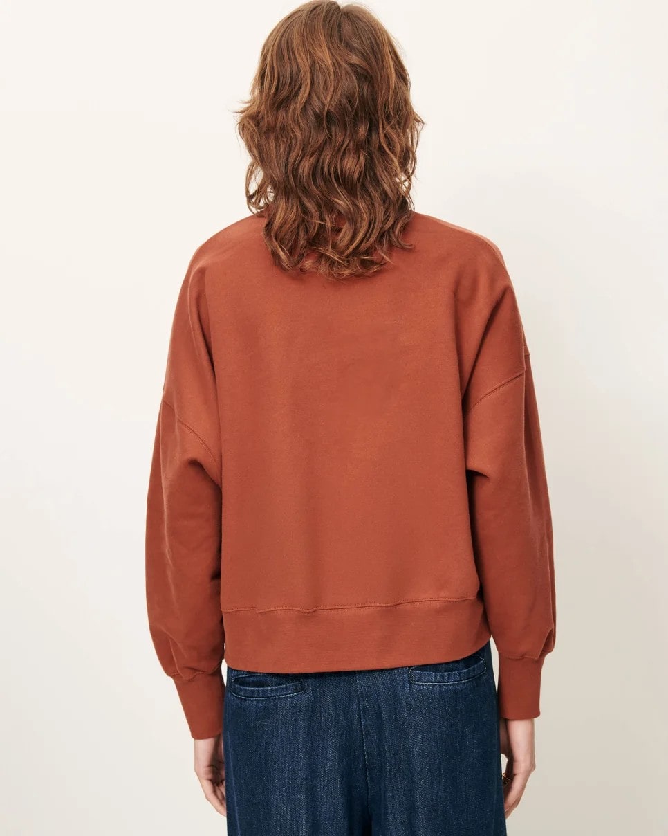 Sudadera corta oversize en muletón capillado, tejida en Portugal.Cuello redondo, sisa baja y manga larga ajustada a la altura de los puños.