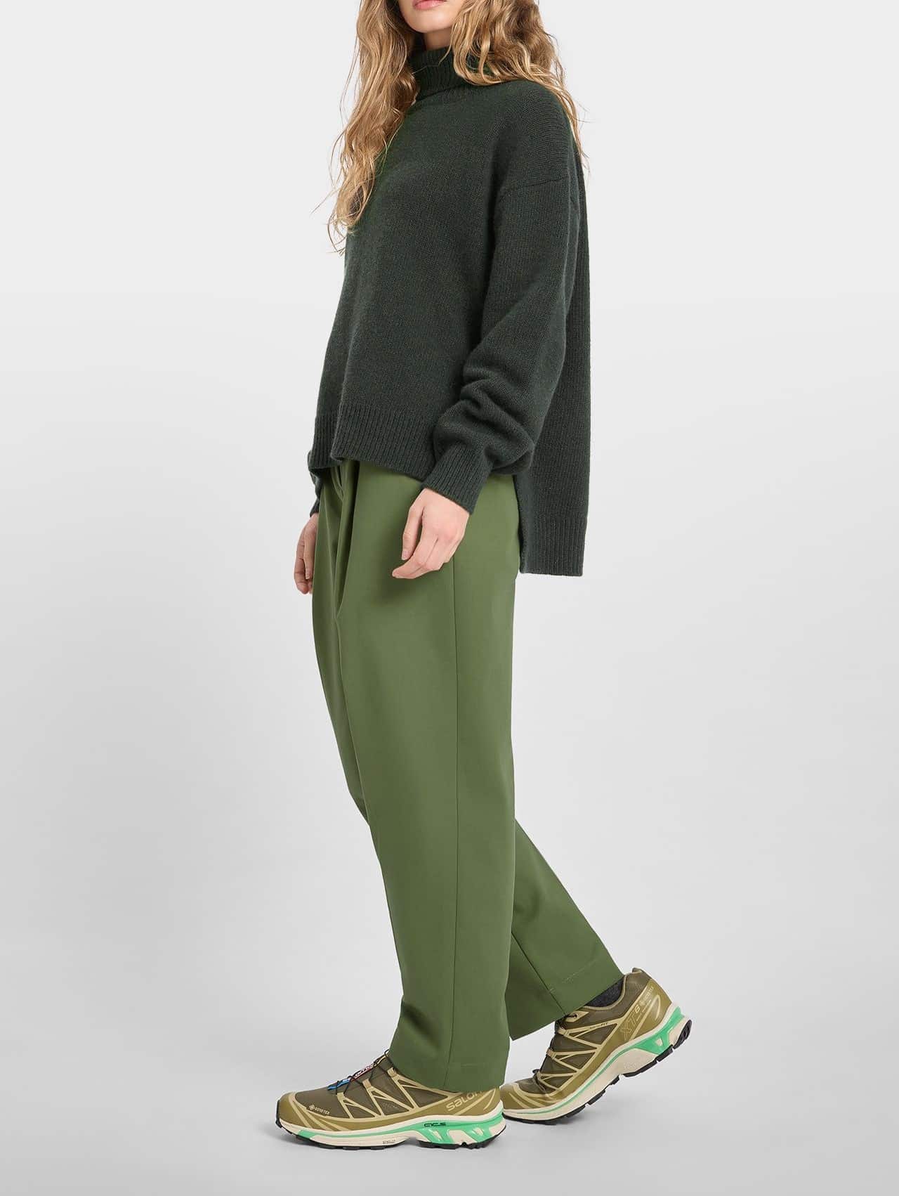 Jersey de punto grueso que dispone de la certificacion GRE, cuello alto relajado , manga larga y abertura en los lados.