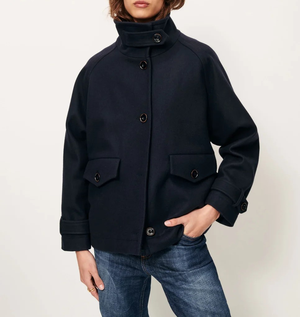 Abrigo tipo cazadora en lana tejida en Italia. Es bastante oversize con lo que la xs sirve para XS-S y la talla S cubre hasta la M