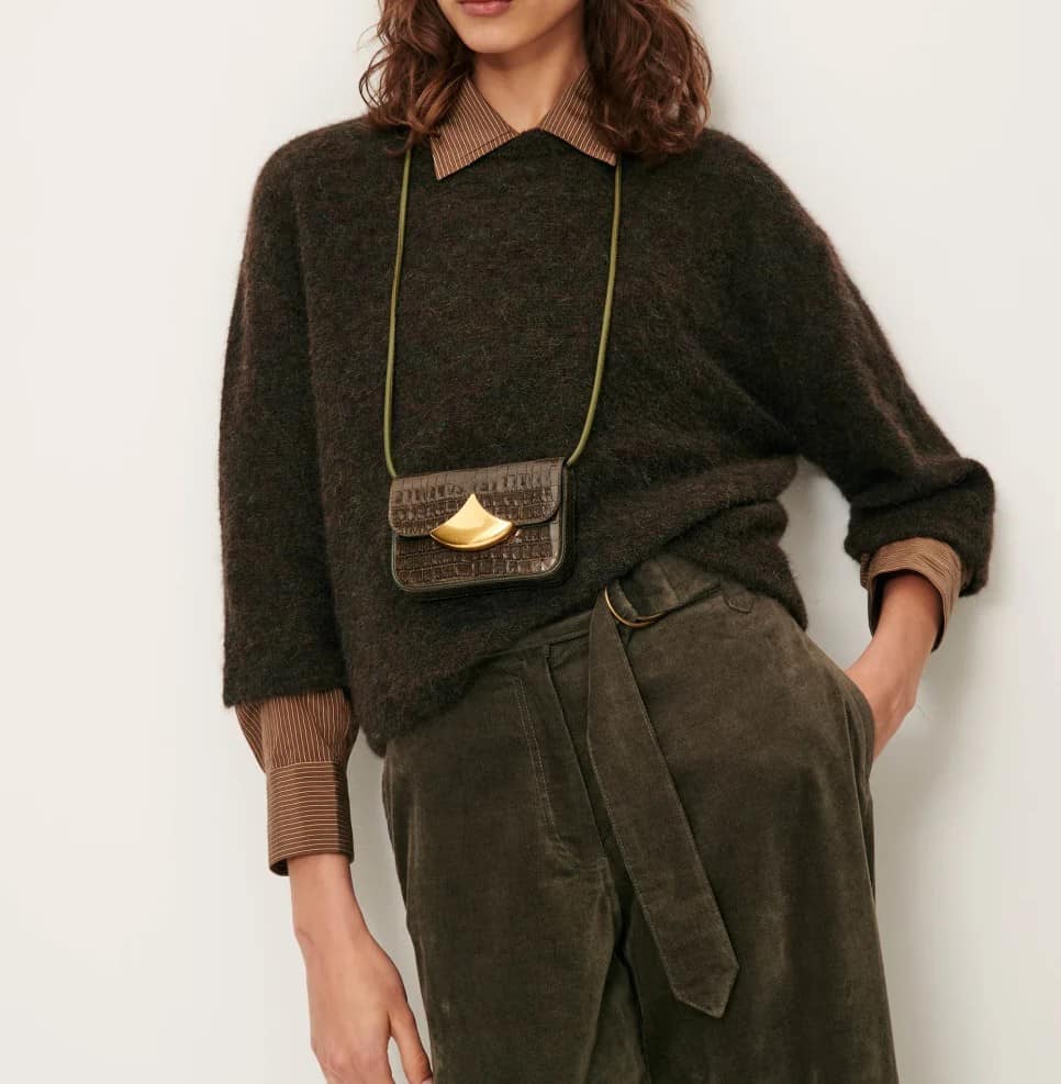 Cuello a la caja, sisa baja y manga al codo.