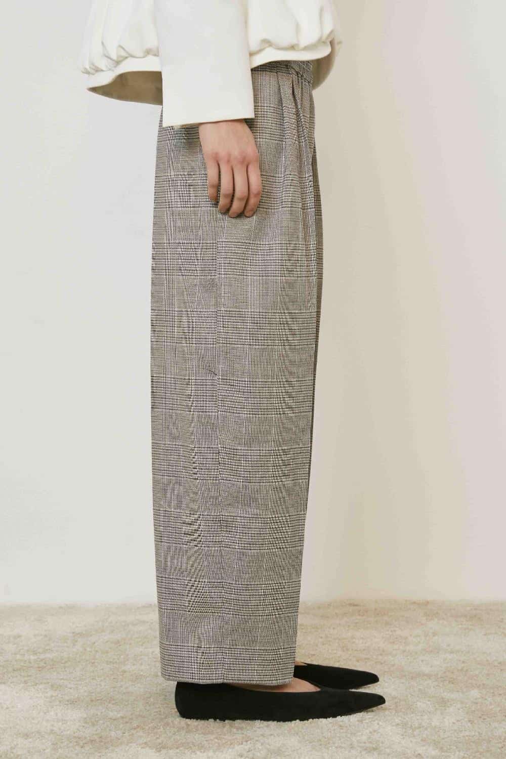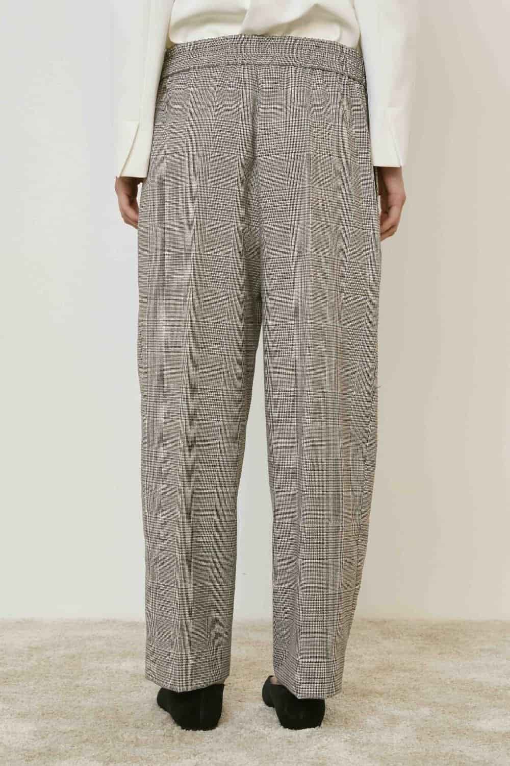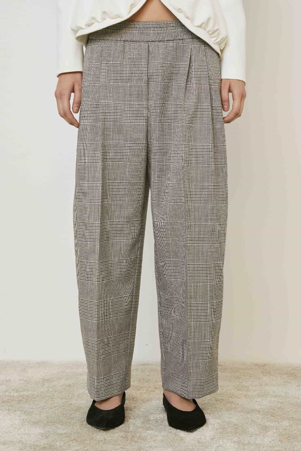 Pantalones altos de cintura elastica con tela tipo punto roma en diferentes cuadros