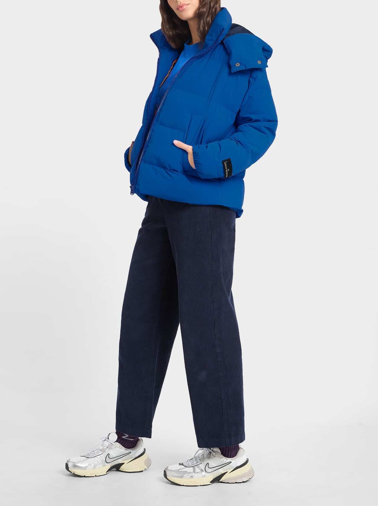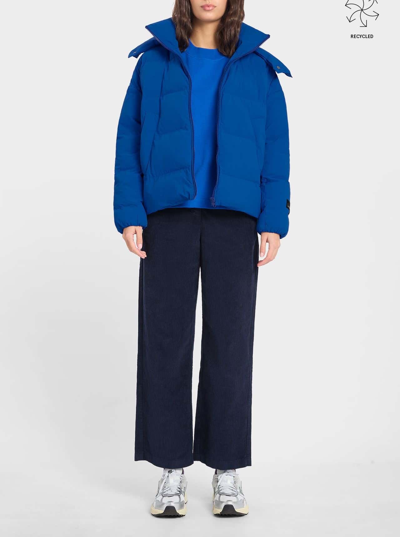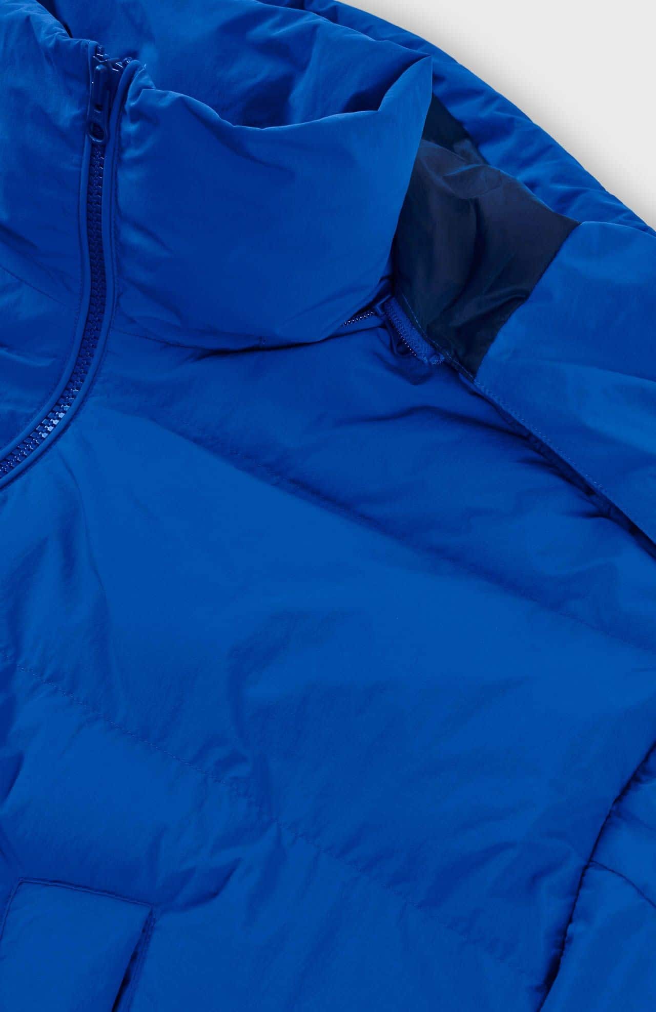 Cazadora acolchada a la cintura, manga larga acabada en elastico, capucha desmontable. Cierre frontal con cremallera y tensores ajustables en ambos laterales.