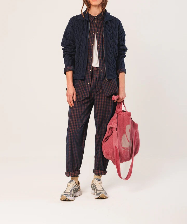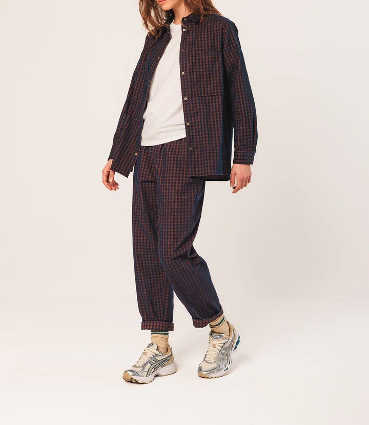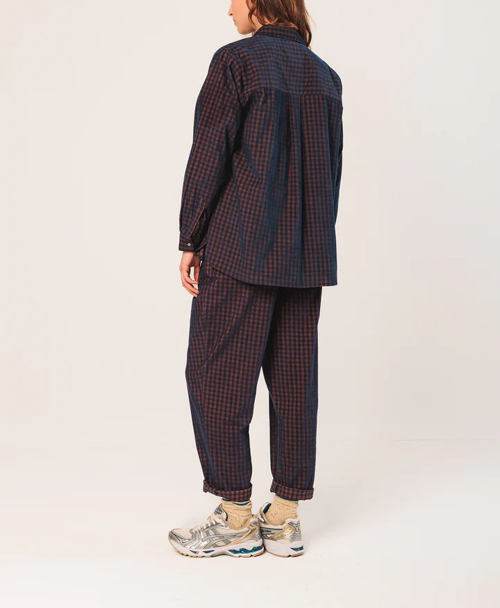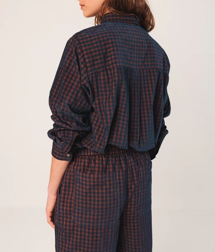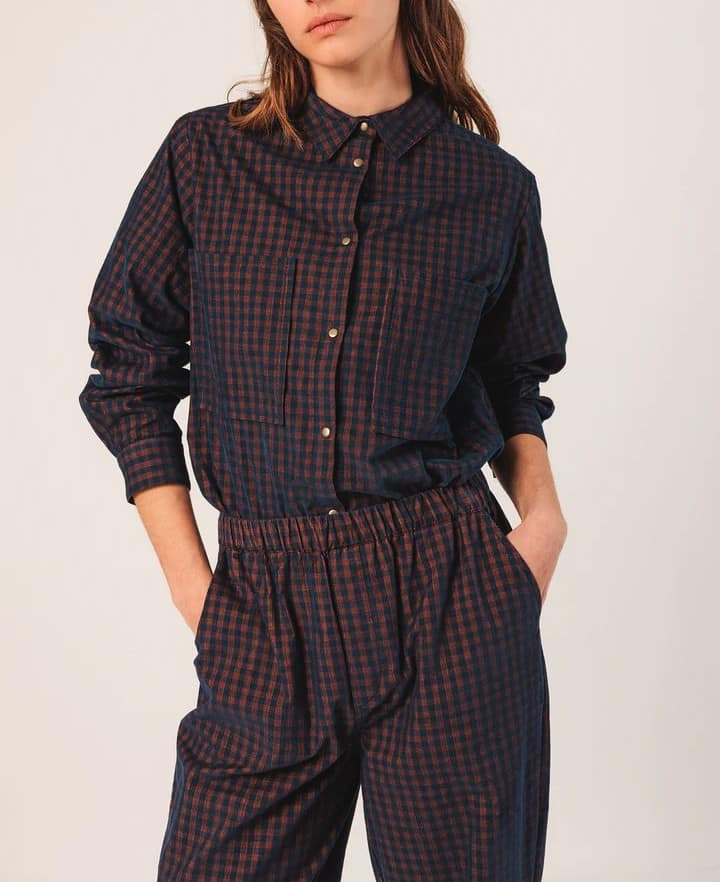 Camisa de hombro encajado y manga larga con puñoy cierre de snaps.