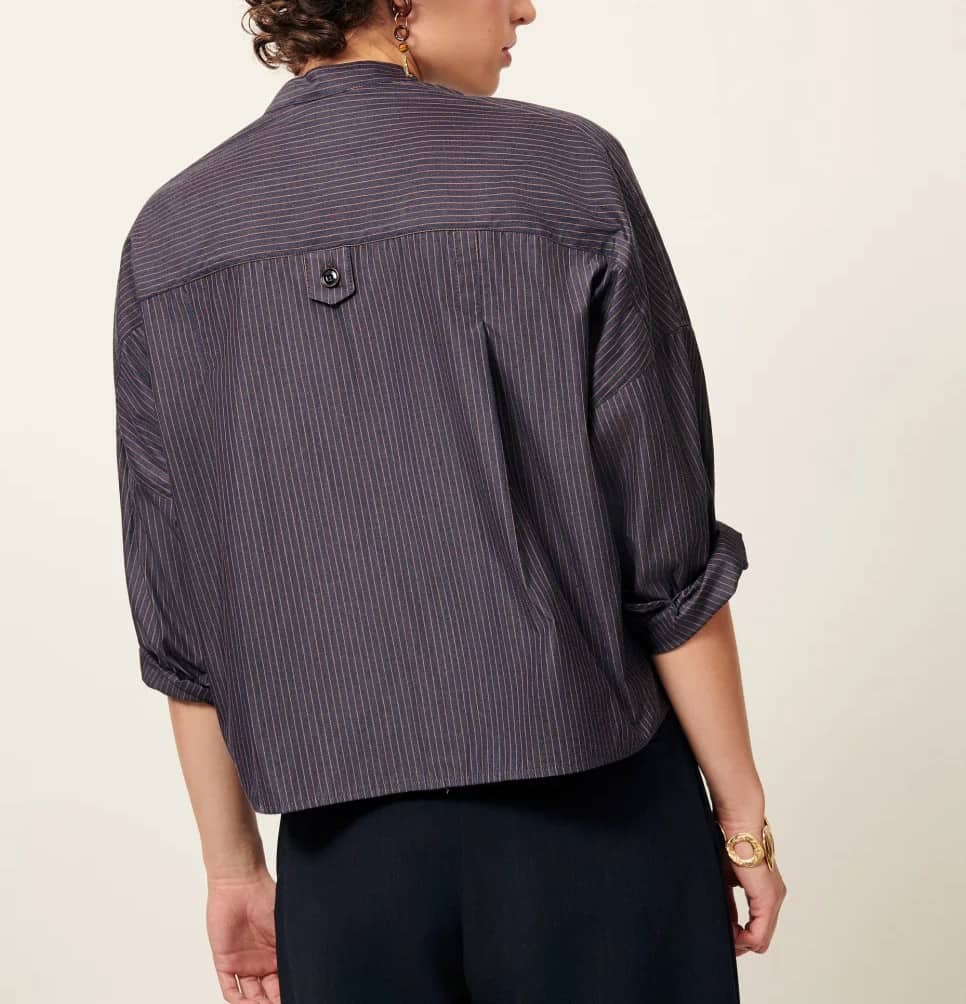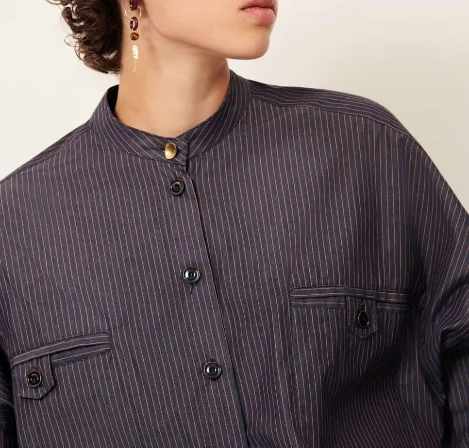 Camisa corta en popelin compacto de algodon con motivo de rayas a contraste , tejida en Italia. Se usa tambien como sobrecamisa